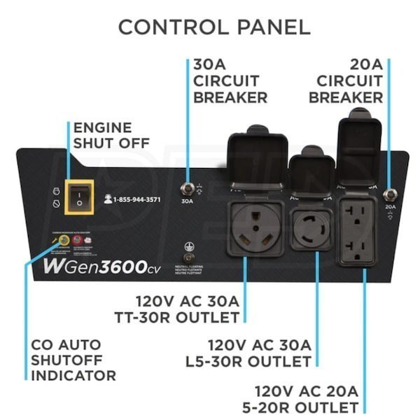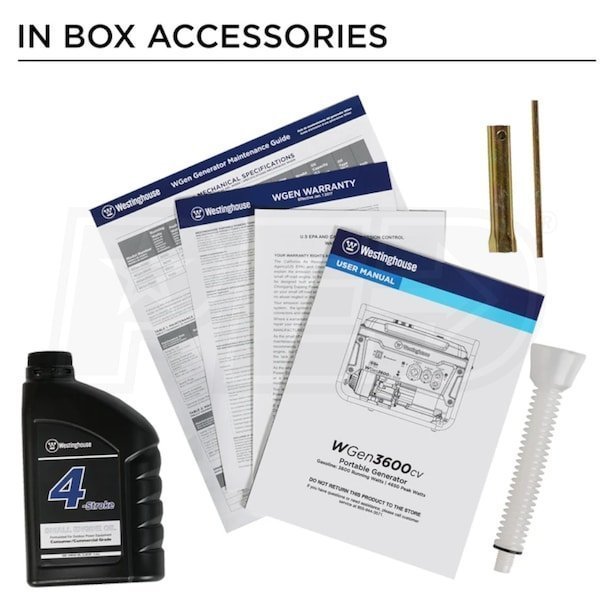 Product SpecsVoltage120 Single-PhaseFrequency60 HertzAlternatorBrushAuto Voltage RegulationYesRated Watts3600 WattsSurge Watts4650 WattsFuel TypeGasolineRated Amps30 AmpsTank Size4 GallonsRun Time @ 50% Load10.5 HoursFuel Tank MaterialMetalFuel GaugeYesDecibel Rating @ 7m69Idle ControlNoHour MeterNoVoltage MeterNoGrade TypeEmergencyCO SensingYesLow THDNoEngineEngine BrandWestinghouseStarting SystemRecoil StartCC212 CCConsumer Engine Warranty3 YearsCommercial Engine Warranty1 YearEngine RPM3600 RPMLow Oil Alert/ShutdownYesCast Iron SleeveYesPlugsNEMA 5-20R – Wall-Type1NEMA L5-30R1RV Ready 30-Amp1